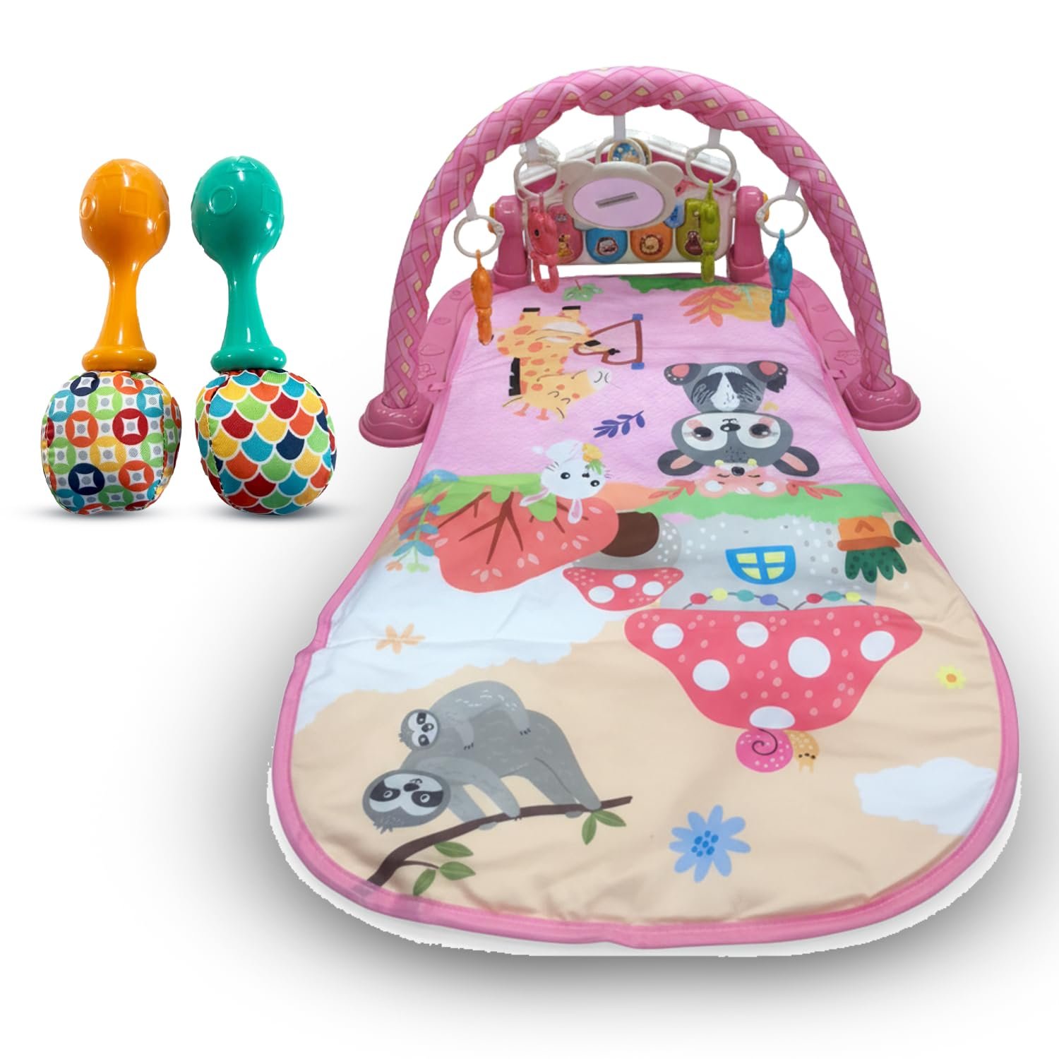 Interactive piano, sensory toys, and high‑contrast arch for fun developmental play (0–36 months).