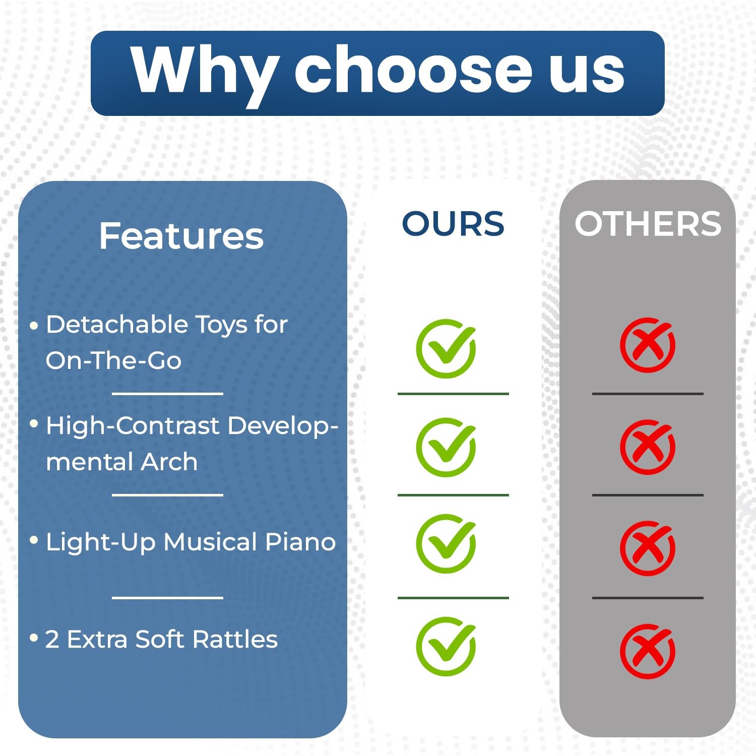 Non‑Slip Base: Provides extra grip on floors to prevent sliding during tummy time and play sessions.
